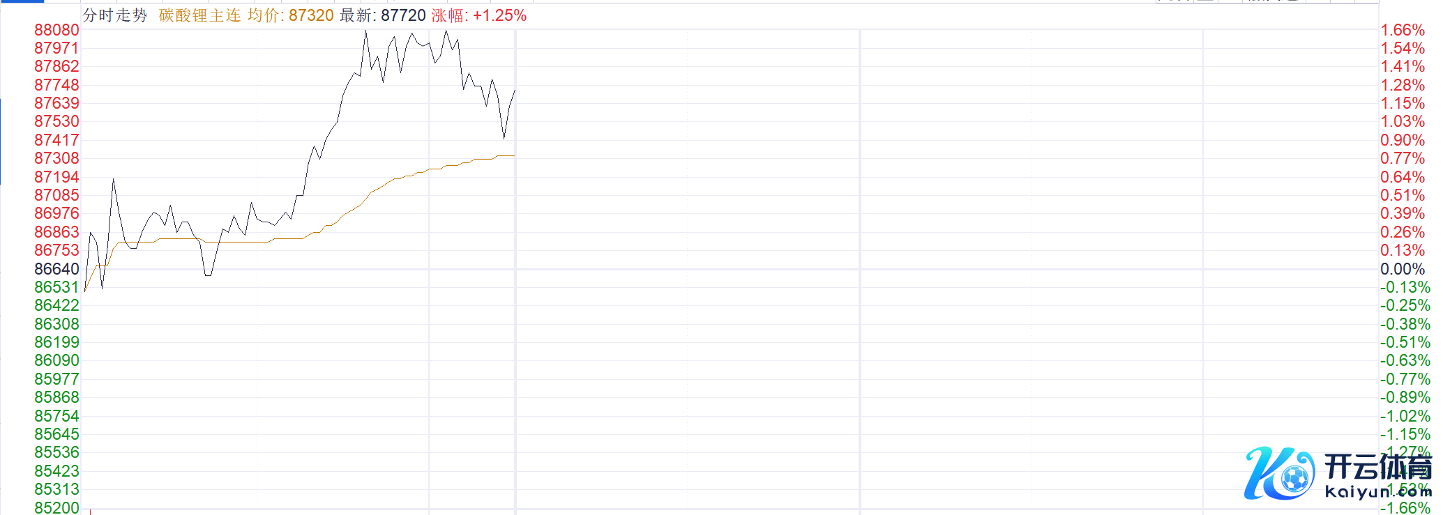 与此同期,碳酸锂期货价钱当天无间走强,盘中一度升至88080元。舍弃发稿,涨1.25%,报87720元/吨。