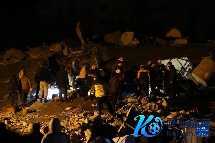 2月6日,拯救东谈主员在土耳其南部地震重灾地卡赫拉曼马拉什省帕扎尔哲克倒塌的树立中搜寻幸存者。