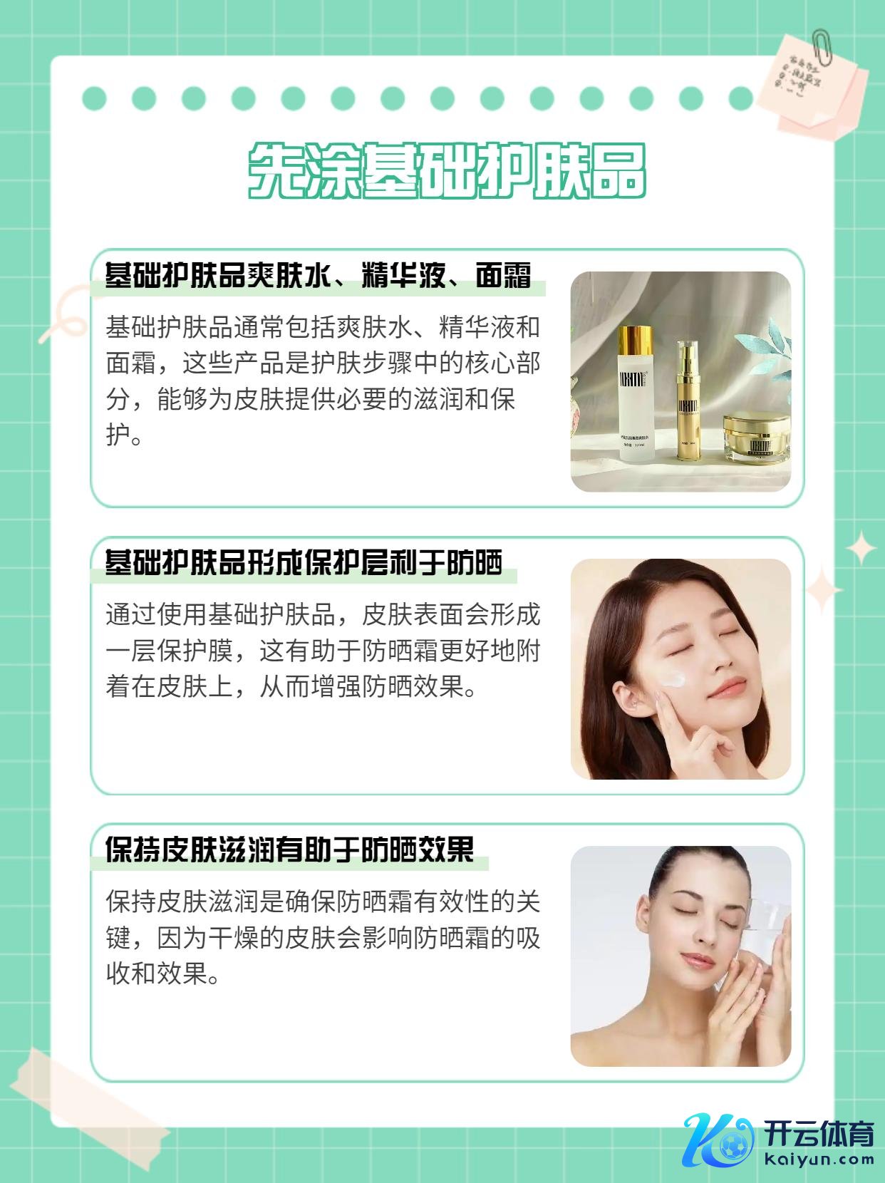 2️⃣ 防晒霜要在基础护肤品十足领受后涂抹,这么工夫确保防晒霜的服从。