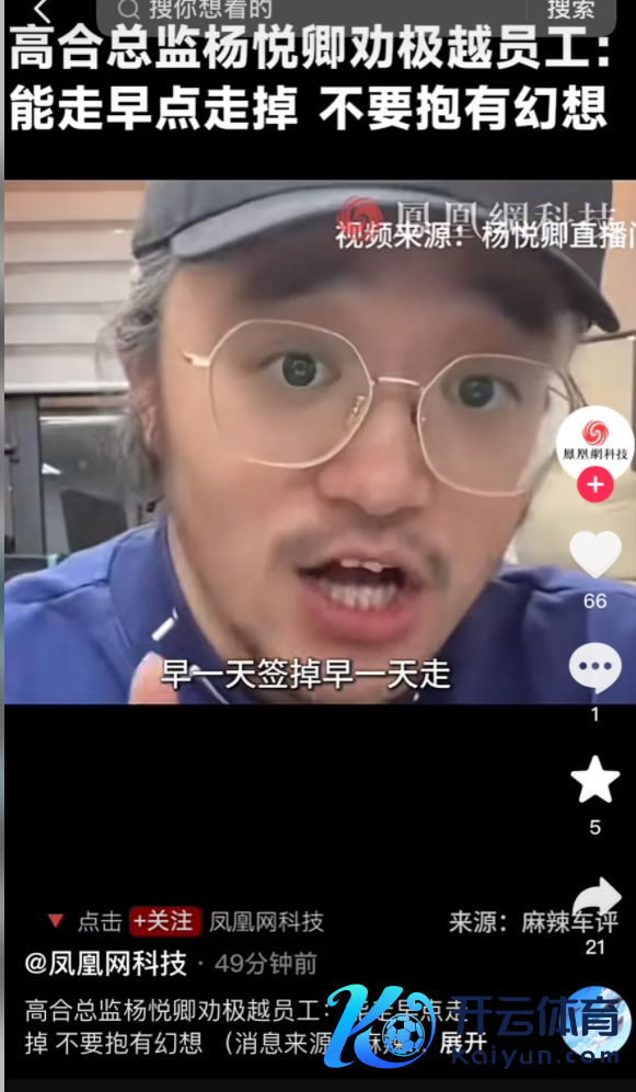 极越职工涌入高合总监杨悦卿直播间,杨悦卿冷漠:“我给你们一些教训之谈,第一件事情能签的就早点签掉,不要抱有幻思,早一天签掉,早一天走,不是为了拿馒头,而是你要比别东谈主更早的参加到这个商场。”