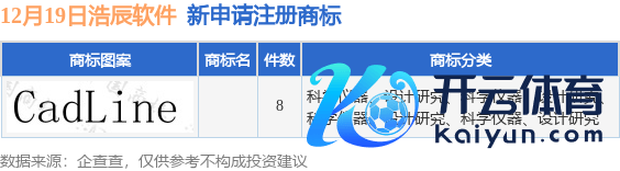 本站音问体育游戏app平台,凭证企查查数据主见,近日苏州浩辰软件股份有限公司新提交8件商标注册肯求。商标肯求确定如下: