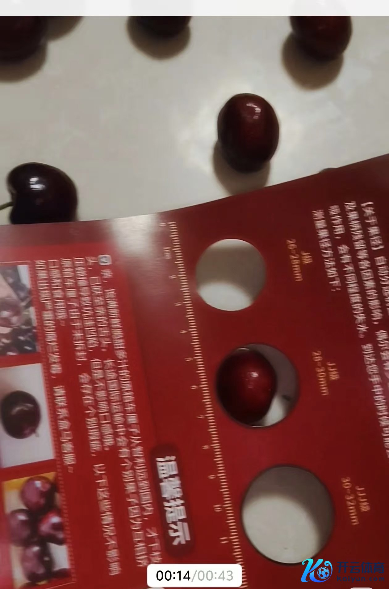 凭证智利生果出口商协会音讯,以果径大小四肢规格范例来别离车厘子的质料,L级车厘子的果径为22-23mm,XL级车厘子的果径为24-25mm,J级车厘子的果径为26-27mm,2J级车厘子的果径为28-29mm,3J级车厘子的果径为30-31mm,4J级车厘子的果径为32-33mm,果径>34mm的车厘子为5J级。此外,色度亦然别离车厘子质料的要素之一,分为Light和Dark两种。