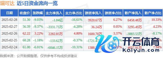 本站音尘,松手2025年2月28日收盘,瑞可达(688800)报收于51.3元,着落9.03%,换手率7.47%,成交量11.83万手,成交额6.25亿元。
