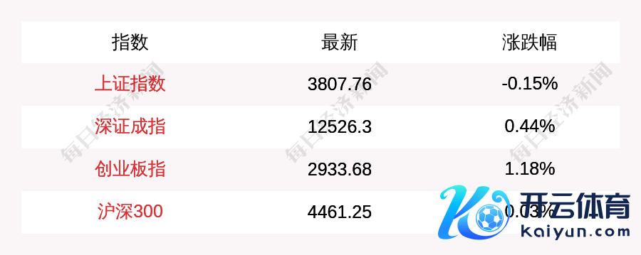 每经AI快讯:北京技能9月4日,上证指数开盘跌5.8点,跌幅为0.15%,报3807.76点;深证成指开盘上升54.3点,涨幅为0.44%,报12526.3点;创业板指开盘上升34.31点,涨幅为1.18%,报2933.68点;沪深300开盘上升1.42点,涨幅为0.03%开云(中国)kaiyun网页版登录入口,报4461.25点。